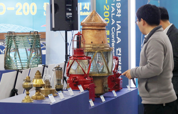 8일 오전 인천시 남동구 인천시청 중앙홀에서 열린 세계등대유물전시회에 과거와 현재의 등대 광원들이 전시되고 있다. /연합뉴스