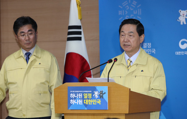 김상곤 사회부총리 겸 교육부 장관이 15일 오후 서울 광화문 정부서울청사에서 2018학년도 대학수학능력시험 연기를 발표하고 있다. 교육부는 이날 오후 포항 지진과 관련해 긴급대책회의를 열고 수능을 1주일 연기해 23일에 치르기로 결정했다. /연합뉴스