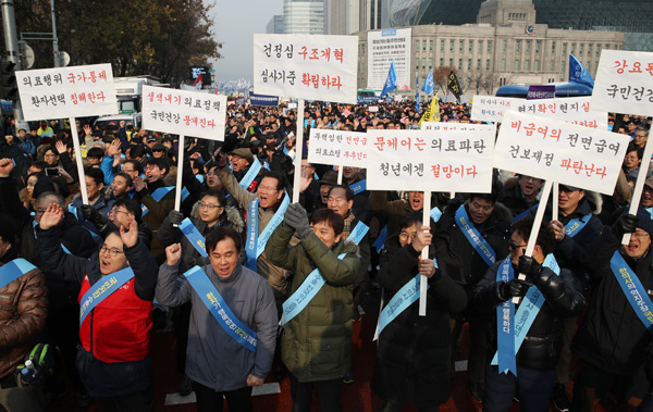 “문재인 케어 취소하라” 시위하는 의사들
