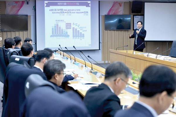 11일 G-Tower 27층 대회의실에서 열린 ‘인천 소재 중앙(특별)행정 기관장과의 간담회’에서 박찬훈 정책기획관이 시정 관련 브리핑을 하고 있다. /인천시 제공