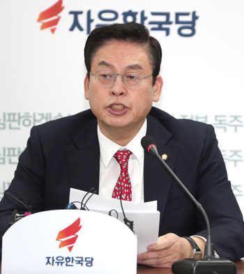 자유한국당 정우택 원내대표가 새 원내대표 선출을 하루 앞둔 11일 국회에서 퇴임 기자회견을 하고 있다./연합뉴스