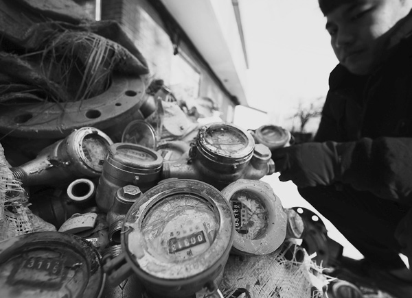 한파에 동파된 수도계량기