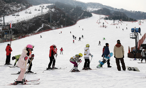 한파가 계속되고 있는 4일 오후 광주시 도척면 곤지암리조트를 찾은 시민들이 스키와 스노보드를 즐기고 있다. /연합뉴스