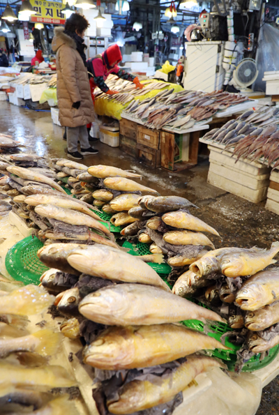 해양수산부가 설 명절을 앞두고 정부비축 수산물 7천700t을 방출한다고 지난 22일 밝혔다. 품목별로는 명태 6천83t, 원양오징어 625t, 갈치 528t, 고등어 319t, 참조기 74t, 삼치 71t 등이다./연합뉴스