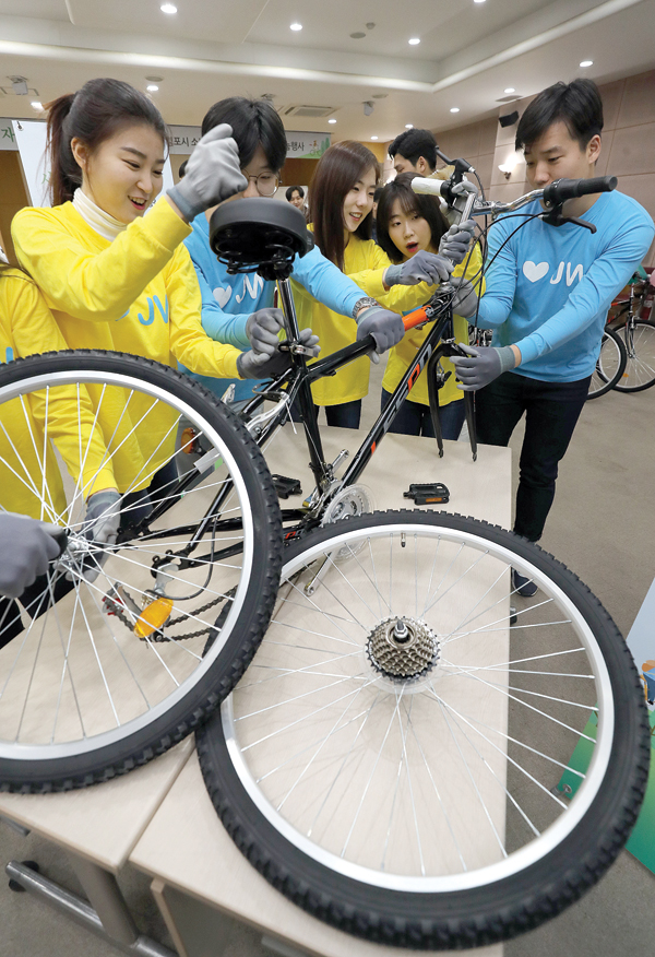 JW그룹 신입사원들 ‘사랑의 자전거’ 조립 분주