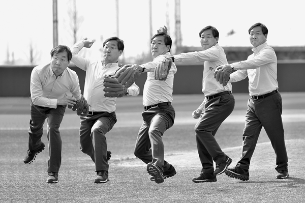 유정복 인천시장이 지난 17일 송도 LNG야구경기장에서 열린 ‘제7회 인천광역시장기 야구경기대회 개회식’에서 축사 후 시구를 하고 있다. /인천시 제공