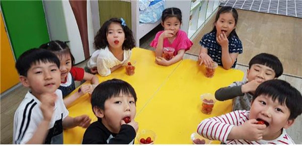 특히 과일은 안전관리인증기준(HACCP) 인증을 받은 ㈜삼신을 통해 공급되며, 아동들이 먹기 쉽게 씨앗 등 먹지 않는 부분을 미리 없애고 세척 및 손질 후 조각과일 형태로 컵에 담겨져 제공된다.