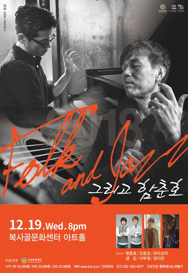 부천문화재단은 오는 19일 저녁 8시 부천 복사골문화센터 아트홀에서 대중가요 명곡을 한자리에서 만나보는 ‘Folk & Jazz 그리고 함춘호’ 콘서트를 개최한다.