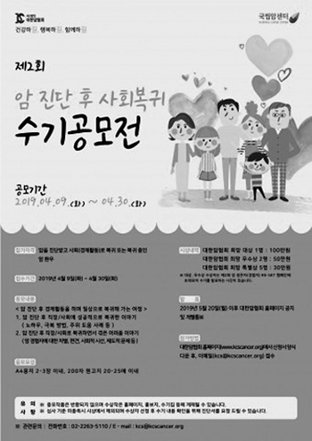 ㈔대한암협회(회장 노동영)가 암 진단을 받은 후 사회 복귀 여정을 담은 ‘암 진단 후 사회 복귀 수기 공모전’을 진행한다.