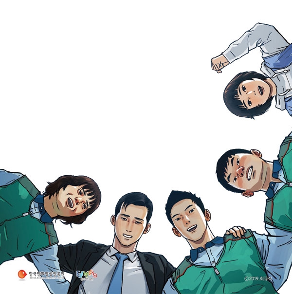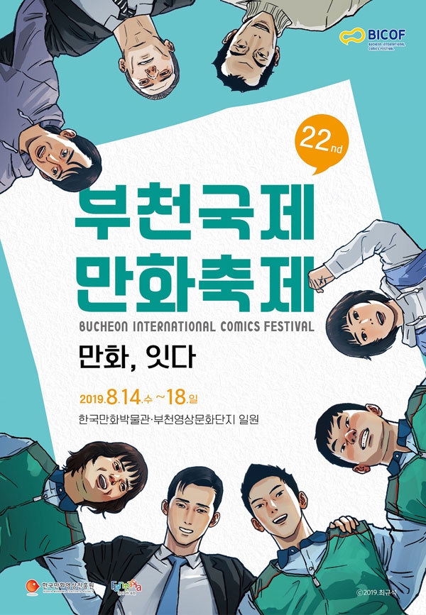 올해 만화축제 포스터는 최규석 작가가 그린 아트 포스터로 2018년 부천만화대상 수상작 ‘송곳’의 주요 인물을 중심으로 2019년 축제 주제인 ‘만화, 잇다’를 표현했다.