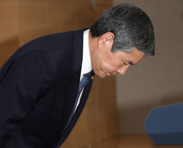 고개 숙인 국방장관