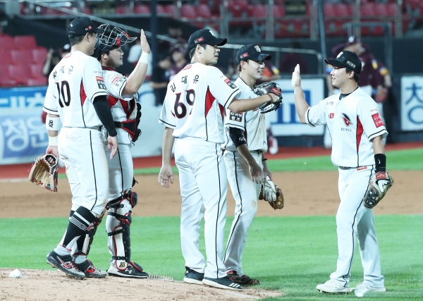 KT는 배제성, 주권에 이어 전유수(1⅓이닝), 김대유(⅔이닝)를 잇따라 마운드에 올려 무실점 승리를 챙겼다.