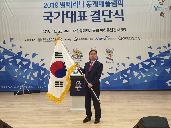 2019 동계 데플림픽에 출전하는 대한민국 국가대표 선수단이 23일 오전 11시30분 이천시에 위치한 대한장애인체육회 이천훈련원에서 결단식을 갖고 선전 결의를 다졌다.