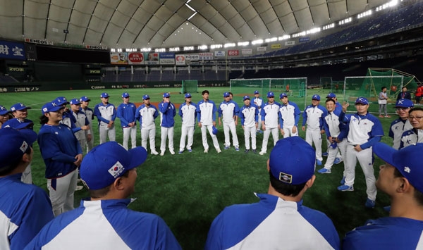 김경문 감독이 이끄는 대표팀은 14일 일본 도쿄돔에서 오전 11시부터 두 시간 동안 공식 팀 훈련을 했다.