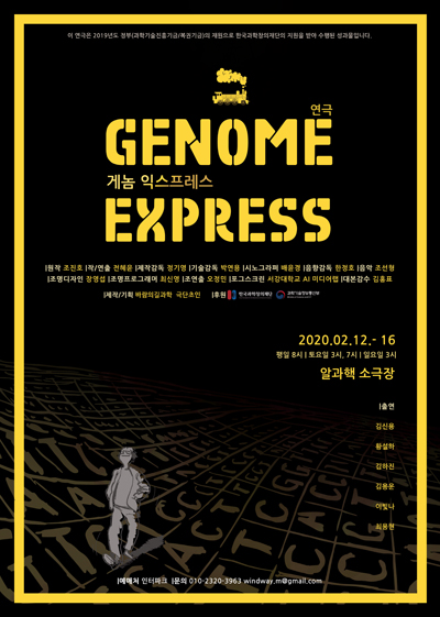 연극 ‘게놈익스프레스’는 자식에게 부모의 정보를 전달하는 유전자가 무엇인지, 그리고 생명이란 무엇인지 밝히려는 과학자들의 꿈과 좌절, 그리고 다시 만들어지는 희망을 극화한 작품으로, 자칫 딱딱할 수 있는 유전자 이야기를 과학자들의 기차여행으로 표현했다.