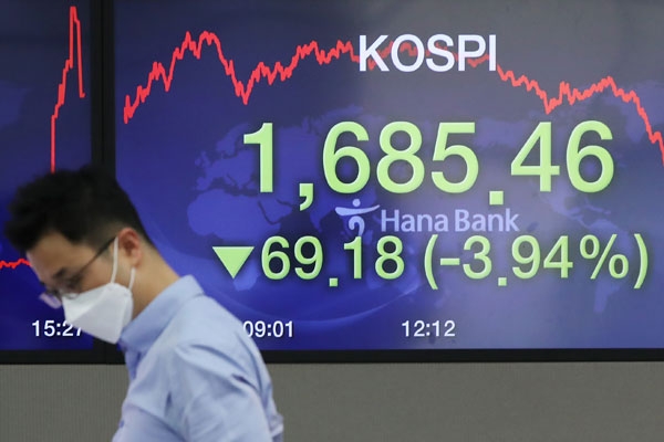 이날 코스피는 전 거래일보다 69.18포인트(3.94%)내린 1,685.46에 거래를 마무리했다.