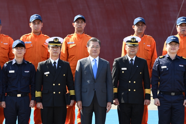 문재인 대통령, 세계 최대 컨테이너선 명명식 참석