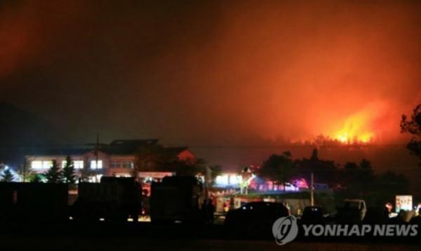 불이 나자 도원리·학야리·운봉리 등 330여세대 600여 명이 아야진 초교와 천진초교 대피했다.