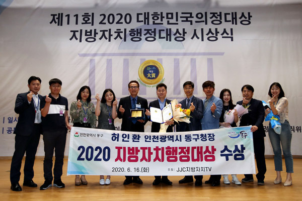 16일 개최된 ‘2020 지방자치행정대상·지방의회의정대상 시상식’에서 허인환 인천시 동구청장이 지방자치와 구정 발전을 헌신적으로 이끈 공로를 인정받아 ‘지방자치행정대상’ 수상의 영예를 안았다. 허인환 구청장은 “향후 10년 이내에 ‘인천의 중심’으로 성장할 수 있도록 최선을 다하겠다”고 말했다.