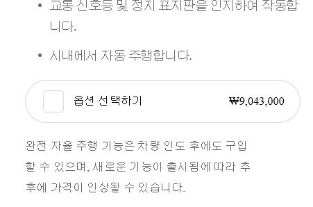 이 때문에 완전 자율주행 기능을 바로 구매할 경우에도 일단 차를 받은 뒤에 하면 약 60만원을 싸게 살 수 있다는 팁이 퍼지고 있다.