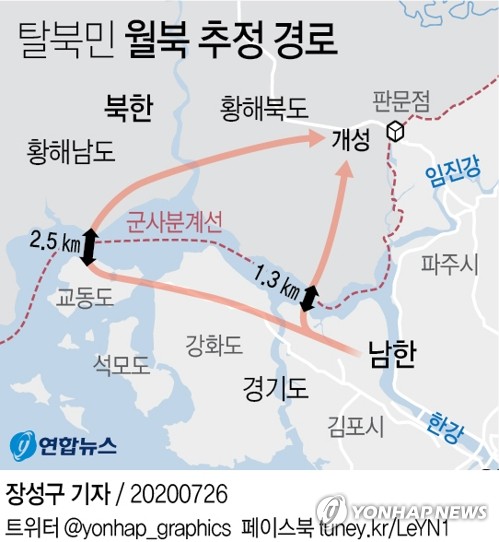 월북한 김씨는 3년 전 탈북 당시 수영으로 도강해 강화도를 통해 남측으로 내려왔는데, 군은 이번에 북측으로 넘어갈 때도 한강 하구를 이용했을 가능성에 무게를 두는 것으로 전해졌다.