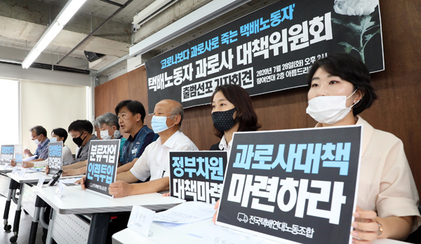 택배노동자들이 신종 코로나바이러스 감염증(코로나19) 확산 이후 고된 노동에 시달리다 숨지는 사례가 잇따르면서 이의 대책을 마련하기 위해 '택배노동자 과로사 대책위원회'가 출범했다.