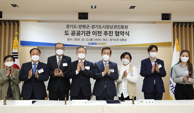 이재명 경기도지사는 정동균 양평군수, 이홍우 경상원 원장과 12일 오후 경기도청에서 이런 내용을 담은 ‘경기도시장상권진흥원 입지 추진을 위한 업무협약’에 공동 서명했다.