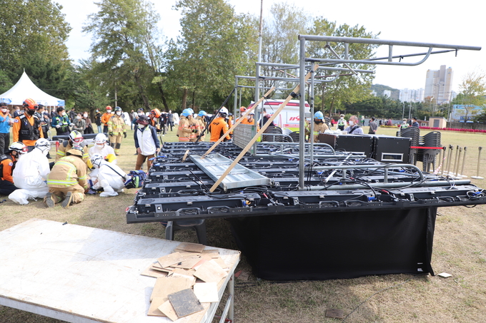 14일 오후 1시 29분께 인천시 부평구 부평미군기지 '캠프마켓'에서 개방 행사용으로 설치한 LED 전광판이 쓰러졌다.