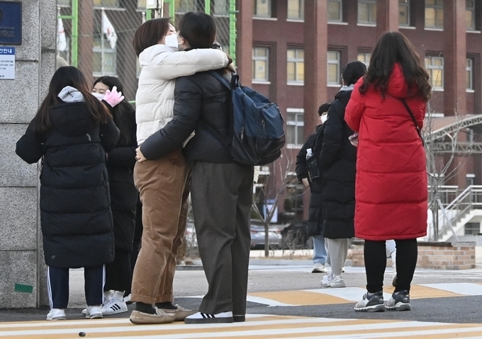 입실 완료시간(8시10분)을 넘어 황급히 달려오는 수험생도 있었다. 오전 8시 15분쯤 대학교를 졸업하고 다시 수능을 보러왔다는 A(29)씨는 “늦어서 못 들어갈 줄 알았는데 다행이다”며 계단을 올라갔다.
