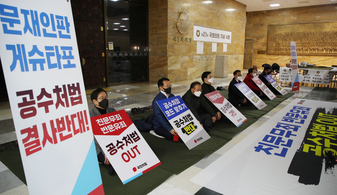 국민의힘은 우선 본회의에 공수처법이 상정되면 필리버스터를 신청해 최대한 입법 절차를 지연시키겠다는 방침이다.