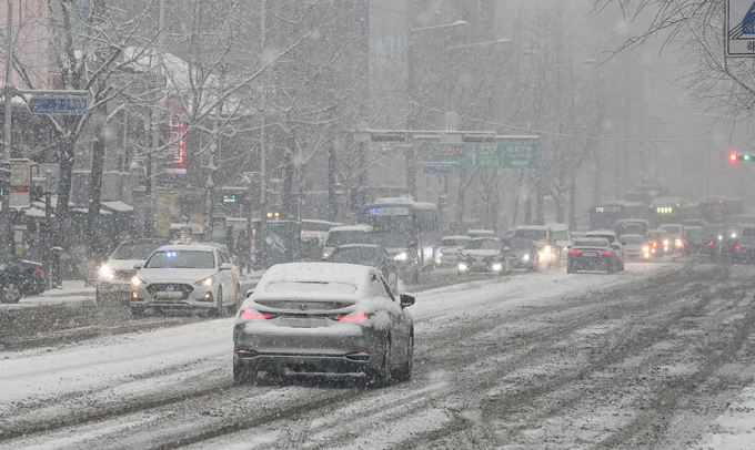오전 4시 기준 서울 동남권(강동, 송파, 강남, 서초)과 인천, 경기 남동부, 강원 영서, 강원산지, 충청권, 전라권, 경북 북부, 경상 서부에 대설특보가 발효 중이다.