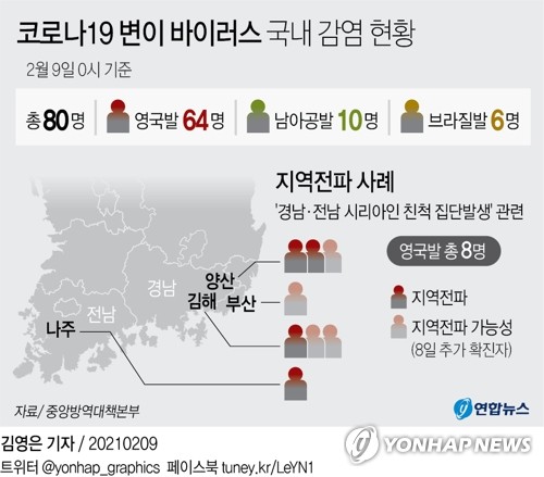 ◇ 변이 바이러스 감염자 누적 80명…"최대한 변이 유입 막아야"