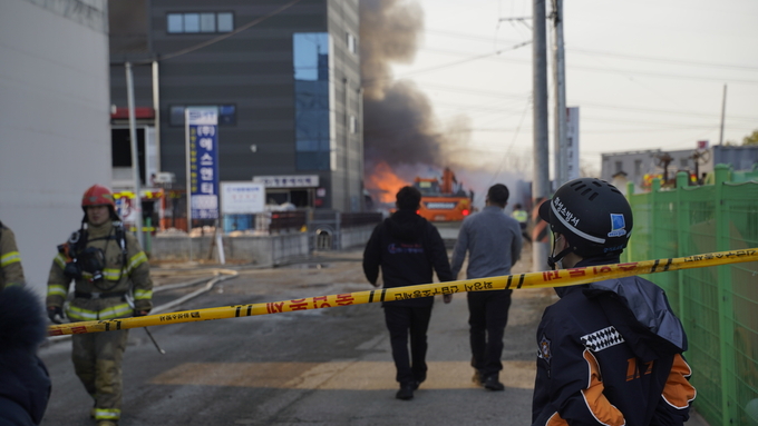 소방당국은 인원 105명과 장비 34대를 동원해 화재 진압에 나섰다. 불을 끄는 대로 화재 경위를 조사할 예정이다.