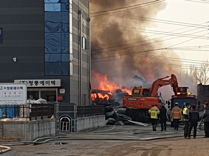 24일 오후 1시 25분쯤 화성시 팔탄면 율암리 재활용 공장에서 화재가 발생했다.