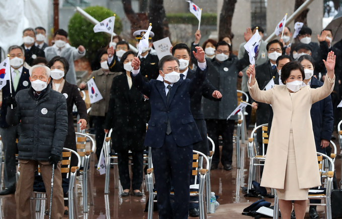 이날 기념식의 마지막을 장식한 만세 삼창도 마지막까지 하나가 되자는 메시지였다.