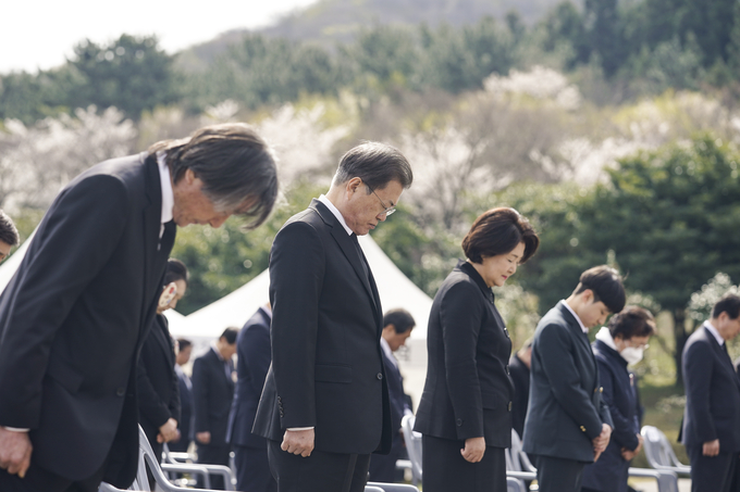 추념식에는 이 밖에도 여야 주요 정당 대표와 박범계 법무부 장관, 전해철 행정안전부 장관, 정근식 진실·화해를 위한 과거사정리위원회 위원장, 원희룡 제주도지사 등이 참석했다.