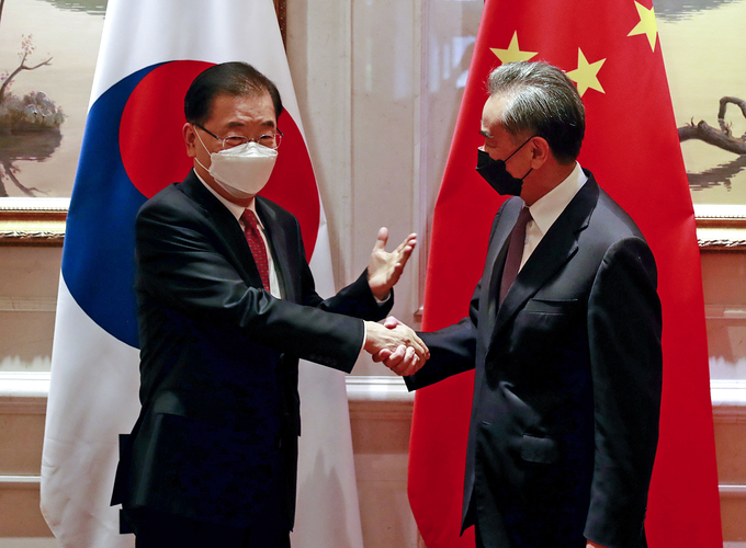 왕이 부장은 회담 모두 발언에서 "한중간 전략적 소통은 중요하며 매우 적기에 이뤄졌다"면서 "양국 관계는 심화 발전의 중요한 기회를 맞이했으며 중국은 한국과 함께 한중 관계의 새로운 발전을 위해 노력할 것"이라고 말했다.