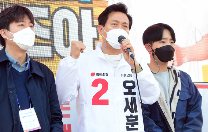 오 후보는 이번 보궐선거 당선으로 서울시장 3선째다. 2006년 제33대 서울시장으로 당선돼 그해 7월부터 임기 4년을 마치고 재선까지 성공했으며, 2011년 8월 사퇴 전까지 도합 5년 2개월 가까이 시장을 지냈다.