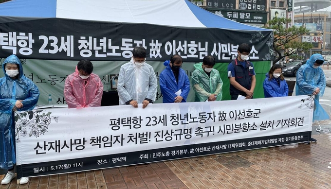 '고 이선호군 산재사망 대책위원회'와 민주노총 경기본부, 중대재해기업처벌법 제정 경기운동본부 등은 이날 평택역에 분향소를 설치하고 사고 진상 규명과 책임자 처벌을 촉구했다.