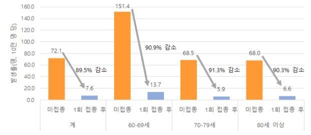 연령별로 나누면 60∼69세가 90.9%, 70∼79세가 91.3%, 80세 이상은 90.3%의 예방 효과가 확인됐다.