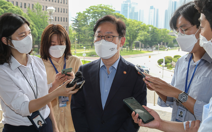 박범계 법무부 장관은 9일 "김오수 검찰총장을 만나 직제개편안에 대한 견해차를 상당히 좁혔다"고 밝혔다.