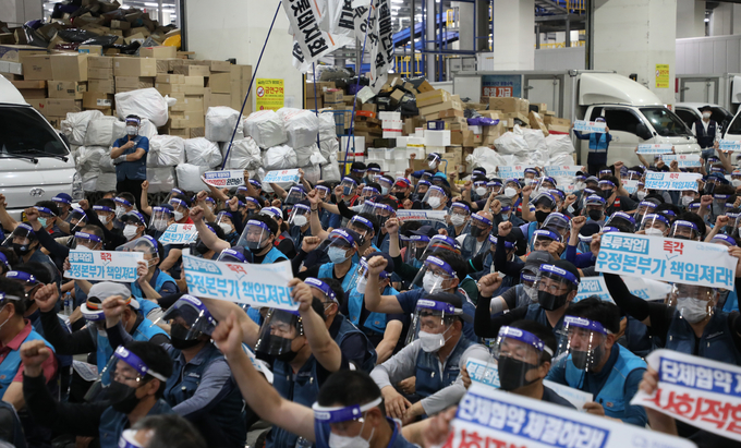 전날 택배 기사 과로사 문제를 둘러싼 정부와 택배 노사 간 사회적 합의가 불발되자, 택배노조는 이날부터 무기한 전면 파업에 돌입하겠다고 밝혔다. 쟁의권이 없는 조합원들은 오전 9시 출근·11시 배송 출발 등 노동시간을 단축하는 방식으로 투장하기로 했다.