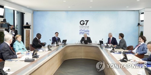 문 대통령은 이날 보건을 주제로 한 G7 정상회의 첫 번째 확대회의 세션에 참석했다. 이 회의는 G7 회원국과 한국을 포함한 4개 초청국 정상들이 참여한 가운데 열렸다.