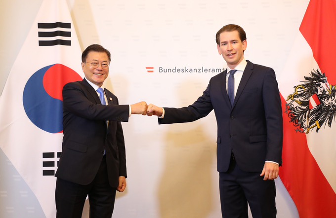 쿠르츠 총리는 2019년 한국을 찾아 문 대통령과 회담한 바 있다. 또 지난달 문 대통령 주재로 열린 '2021 P4G 서울 정상회의'에 화상으로 참여해 기후변화 대응에 머리를 맞대기도 했다.