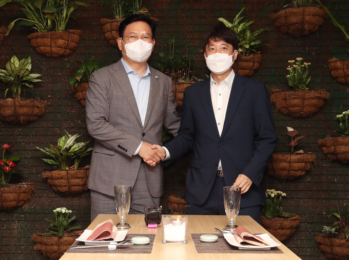 이날 만찬은 방역 상황을 고려해 송 대표와 이 대표 단둘이 진행했다.