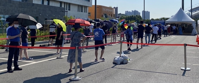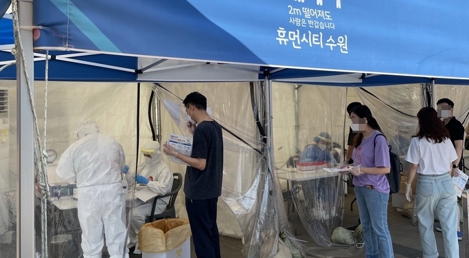 같은 날 오후 안양 범계역 임시선별검사소에는 역 앞 출구부터 검사를 받기 위해 나선 시민들이 줄지어 늘어섰다. 내리쬐는 뙤약볕에 시민들은 연신 부채질을 했지만, 실외 대기시설과 양산 등 폭염예방용품은 찾아볼 수 없었다.