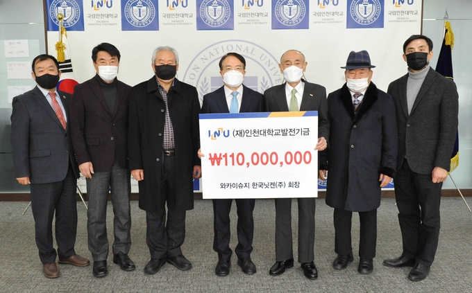 와카이슈지 한국닛켄(주) 회장이 11일 인천대학교발전기금에 1억 1000만 원을 기탁했다.