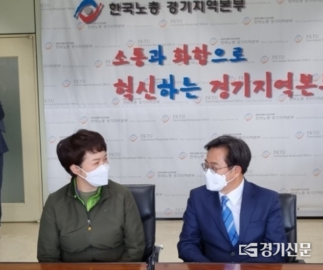 이날 김동연 후보는 김은혜 후보와 만남 소감을 묻는 질문에 “오늘은 노동의 가치와 존중에 대해 같이 이야기하는 자리이다 보니 이를 위해 진정성 있게 뜻을 모았으면 좋겠다”며 말을 아꼈다.