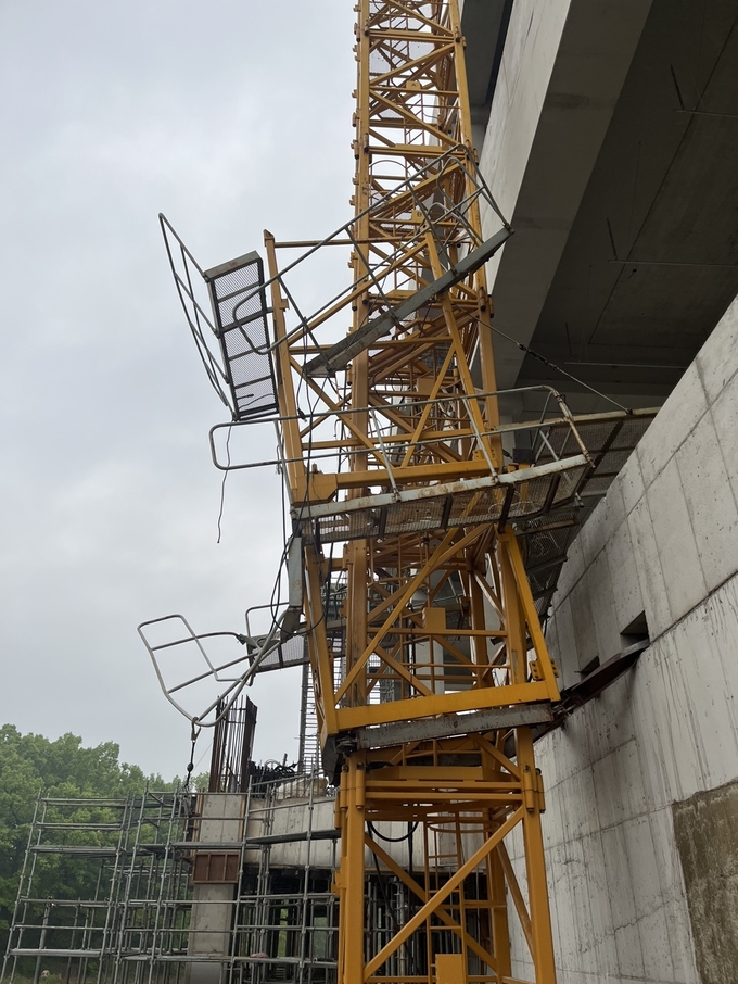 텔레스코픽 케이지는 타워크레인의 높이를 높이는 장치다.