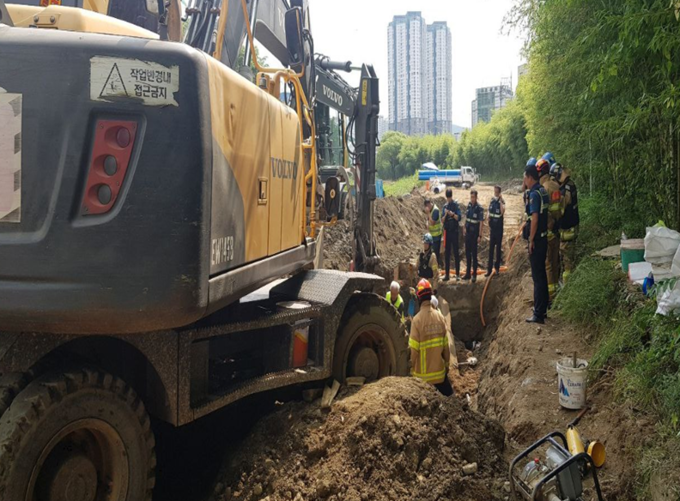 이번 사고는 작업자들이 2m가 넘는 깊이로 파놓은 구덩이에 들어가 노후화된 상수도관 교체 작업을 하던 중 발생했다.